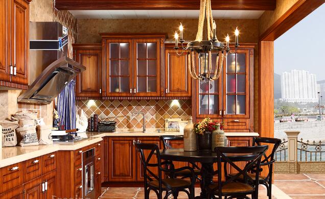 木紋色的吸塑門板經(jīng)過相對復(fù)雜線條造型和做舊處理,體現(xiàn)出的古典奢華直逼實木效果。